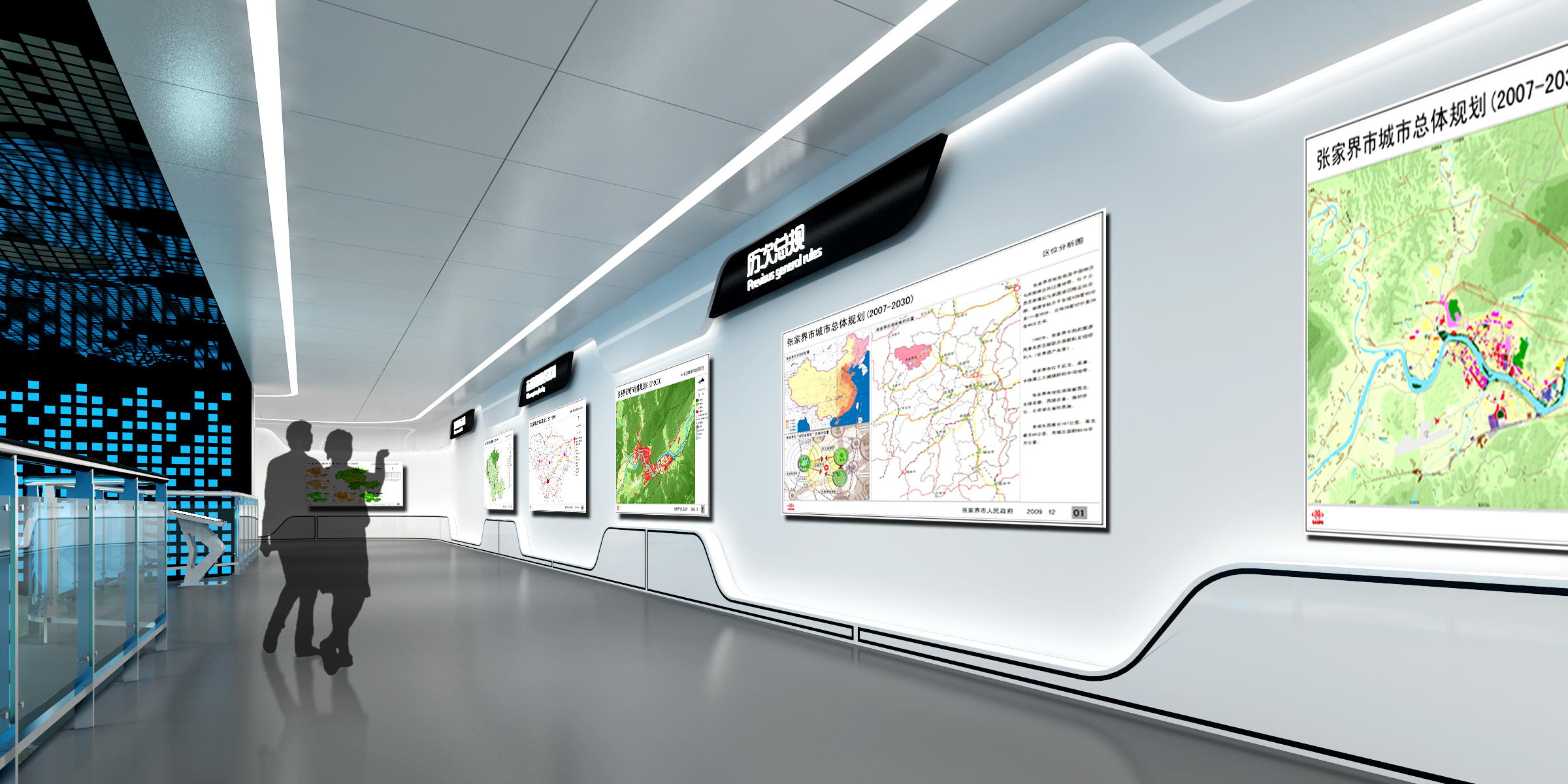 張家界城建規劃館,總建筑面積1959.6平方米,其中布展面積約1800平方米。整個展館按照歷史、現在、未來的時間線索,以“人間勝境,別有洞天”為主題,采用大量高科技展陳手段,將互動游戲、大型多媒體互動沙盤秀、VR漂流體驗、數字沙盤、未來影院等現代聲光電技術融入多項展示環節,集城市展覽、規劃公示、咨詢交流、宣傳教育等多功能于一體,展示張家界悠久獨特的地域文化、奇山異水的絕美景觀和波瀾壯闊的城市建設,并暢望美好未來。