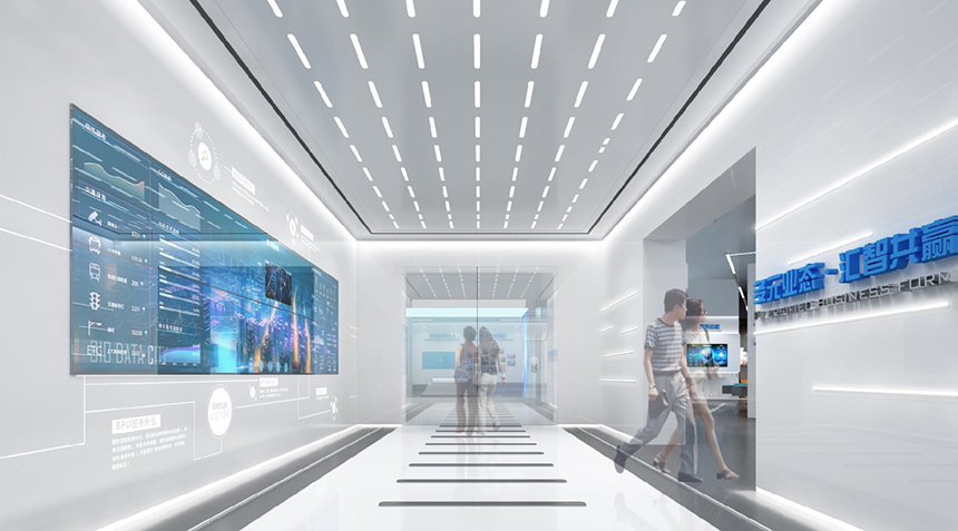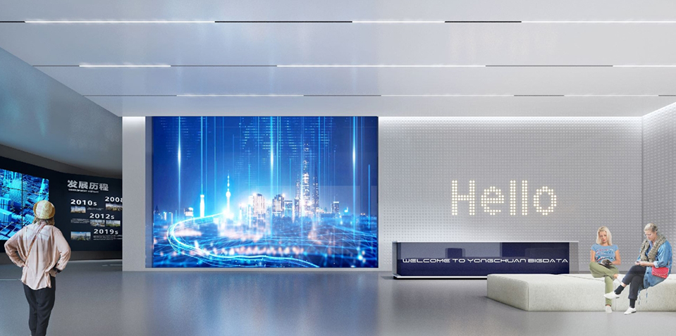 永川大數據展示中心位于重慶市永川區大數據產業園,展館采用現代簡約風,將像素和數據流的概念融入空間。展品與傳統形式區分開,利用多種媒體手法,通過互動體驗吸引參觀者的注意力。展項內容可隨大數據的發展與變化持續更新。