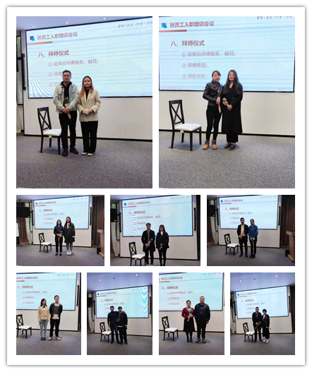 在拜師環節,通過徒弟向師父“敬茶獻花”、師父對徒弟“給予寄語”的儀式,使新員工更有歸屬感與儀式感,成為了金螳螂文化的一員,更結識了一段師徒緣。