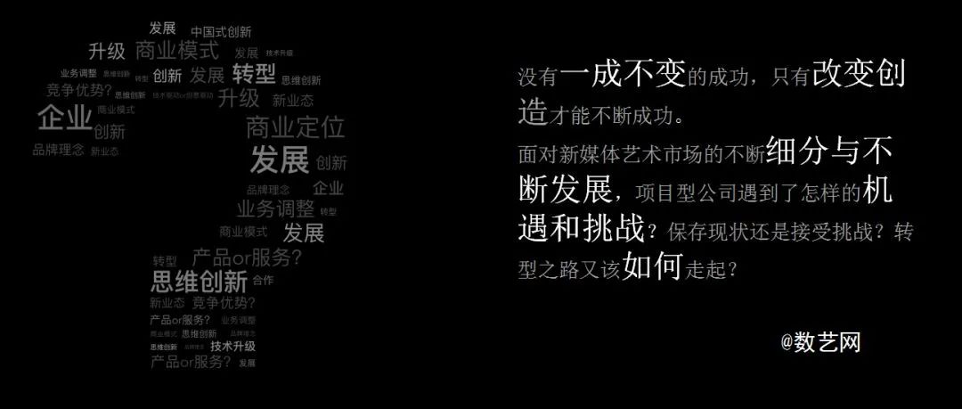 Gold Mantis (地址定位) 主題:不“轉(zhuǎn)”不“型” 本期活動主題:不“轉(zhuǎn)”不“型” 2020年,文旅部、國家發(fā)改委等部門陸續(xù)發(fā)布《關(guān)于推動數(shù)字文化產(chǎn)業(yè)高質(zhì)量發(fā)展的意見》《關(guān)于深化“互聯(lián)網(wǎng)+旅游”推動旅游業(yè)高質(zhì)量發(fā)展的意見》《關(guān)于支持新業(yè)態(tài)新模式健康發(fā)展激活消費市場帶動擴大就業(yè)的意見》等政策文件,從多個角度提出推動文化和旅游產(chǎn)業(yè)數(shù)字化、網(wǎng)絡(luò)化、智能化轉(zhuǎn)型升級。 過去一年,無論重大活動還是節(jié)慶日,舉辦大型文藝演出已成常態(tài),多種舞臺科技手段的應(yīng)用為文藝演出增添了亮點。互聯(lián)網(wǎng)技術(shù)的應(yīng)用讓收藏在博物館里的文物、書寫在古籍里的文物“活”了起來。 數(shù)字藝術(shù)在文旅行業(yè)中應(yīng)用廣泛,且所占的比重逐年攀升,作為身處數(shù)字媒體藝術(shù)產(chǎn)業(yè)鏈上下游的各企事業(yè)機構(gòu),也都將面臨一場較大且有挑戰(zhàn)性的轉(zhuǎn)型升級。 (關(guān)鍵詞:#數(shù)字文旅 #沉浸式體驗 #夜游經(jīng)濟 #文旅夜游 #數(shù)字藝術(shù) #數(shù)字化轉(zhuǎn)型) 如果您重視且對這個話題感興趣的話,數(shù)藝之友咖啡館蘇州站將是你不可錯過的一次分享沙龍活動。 歡迎您作為一位“吃瓜群眾”過來報名參與交流學(xué)習(xí); 如果您本就重視品牌建設(shè),并正在塑造品牌,那么成為我們本場活動的贊助合作伙伴豈不更是“錦上添花”? 歡迎洽談贊助合作 添加數(shù)藝網(wǎng)客服微信:shuyiwang2019 數(shù)藝之友咖啡館——活動簡介 數(shù)藝之友咖啡館(DCOFFEE)是數(shù)藝網(wǎng)主辦的首個行業(yè)線下活動品牌,旨在為業(yè)內(nèi)人員、企業(yè)提供一個面對面交流的機會,不定期在全國各大城市輪流舉辦。 每次活動都將圍繞特定主題進行交流分享,邀數(shù)字藝術(shù)產(chǎn)業(yè)鏈中各環(huán)節(jié)的企業(yè)、品牌主/業(yè)主、新媒體藝術(shù)家、院校機構(gòu)等一同相聚線下,在一個溫馨的環(huán)境下,多名伙伴們展開一場有吃、有喝、有聊的“對話”。 人人可以是吃瓜群眾、分享嘉賓、工作人員。我們希望以最接地氣、最輕松的方式點燃所有參與活動的人員釋放出分享交流的熱情。 我們希望數(shù)藝之友咖啡館可以成為一個眾創(chuàng)的、公益性活動,喜愛并熱衷參與到這個活動的人員可以共同組織、參與到活動的方方面面。根據(jù)每次活動的需要貢獻力所能及的相關(guān)資源(資金、場地、攝影攝像、策劃設(shè)計、媒體、吃喝、紀(jì)念品等等…) 冠名贊助可直接獲得冠名權(quán),如:數(shù)藝之友(金螳螂文化)咖啡館 活動流程 12:00~13:00 活動入場、簽到 13:00~13:05 活動正式開始、主持人致歡迎詞 主持人:賈亞飛 虎嗅文化創(chuàng)始人/藝術(shù)總監(jiān)、 數(shù)藝網(wǎng)事業(yè)合伙人 13:05~13:10 領(lǐng)導(dǎo)致辭 13:10~13:15 文創(chuàng)聯(lián)領(lǐng)導(dǎo)致辭 13:15~13:20 冠名贊助嘉賓致歡迎辭 高珉 一級建造師 金螳螂文化聯(lián)席總裁 13:20~13:30 主持人介紹此次活動整體安排及數(shù)藝網(wǎng) 分享嘉賓 13:30~13:55 林俊廷 新媒體藝術(shù)家 青鳥新媒體藝術(shù) 藝術(shù)總監(jiān) 四川美術(shù)學(xué)院 實驗藝術(shù)學(xué)院特聘教授、碩士研究生導(dǎo)師 林俊廷其擅長透過物理三維空間和第四維「時間」的交融呈現(xiàn),讓觀者經(jīng)由身體參與、經(jīng)歷心理知覺變化而完成一種「幻境體驗」,在進入現(xiàn)實與非現(xiàn)實的縫隙之際,當(dāng)下的感知與如夢的體驗交互辯證構(gòu)成一種完形審美經(jīng)驗。曾獲美國洛克斐勒基金會科技藝術(shù)獎,為第一位在紐約Location One科技藝術(shù)中心駐村創(chuàng)作的臺灣藝術(shù)家,作品曾應(yīng)邀于英國、法國、意大利、芬蘭、美國、日本、韓國、新加坡等國際展覽中展出,并獲美國、澳洲及新西蘭等地的美術(shù)館和上海文化發(fā)展基金會、國巨基金會……等永久收藏。 2011年,與臺北故宮博物院合作「山水覺─黃公望與富春山居圖新媒體藝術(shù)特展」,由不同角度切入詮釋<富春山居圖>之神思意境,是目前亞洲唯一展覽榮獲美國博物館協(xié)會(AAM)<謬思獎>MUSE詮釋互動金獎(2012)、英國藝術(shù)報(The Art Newspaper)評選為當(dāng)年度全球人氣最高的展覽第三名。 《鶴采》Cloud Dance 《新石頭記》 《天池》 《九霄》Sublime 13:55~14:15 殷帥博 OUTPUT戰(zhàn)略發(fā)展經(jīng)理 “連續(xù)創(chuàng)業(yè)者”,曾擔(dān)任QUEST品牌大中華區(qū)商務(wù)總監(jiān),百萬大號“壹課”平臺聯(lián)合創(chuàng)始人,綠植藝術(shù)品牌Mossters聯(lián)合創(chuàng)始人,目前主要負(fù)責(zé)OUTPUT新媒體產(chǎn)業(yè)鏈生態(tài)布局及業(yè)務(wù)戰(zhàn)略規(guī)劃。OUTPUT作為國內(nèi)領(lǐng)先的數(shù)字藝術(shù)內(nèi)容平臺,迄今已簽約數(shù)百位國際頭部創(chuàng)作者,聚焦整合藝術(shù)+科技的新型數(shù)字內(nèi)容賦能文旅地產(chǎn)、消費零售、科技互聯(lián)網(wǎng)為主的行數(shù)字化體驗升級,目前已合作包括故宮、阿里、騰訊、華為、LVMH、開云集團、K11、阿那亞等在內(nèi)的數(shù)百個品牌。 OUTPUT亮相阿里設(shè)計周 OUTPUT X 騰訊公共數(shù)